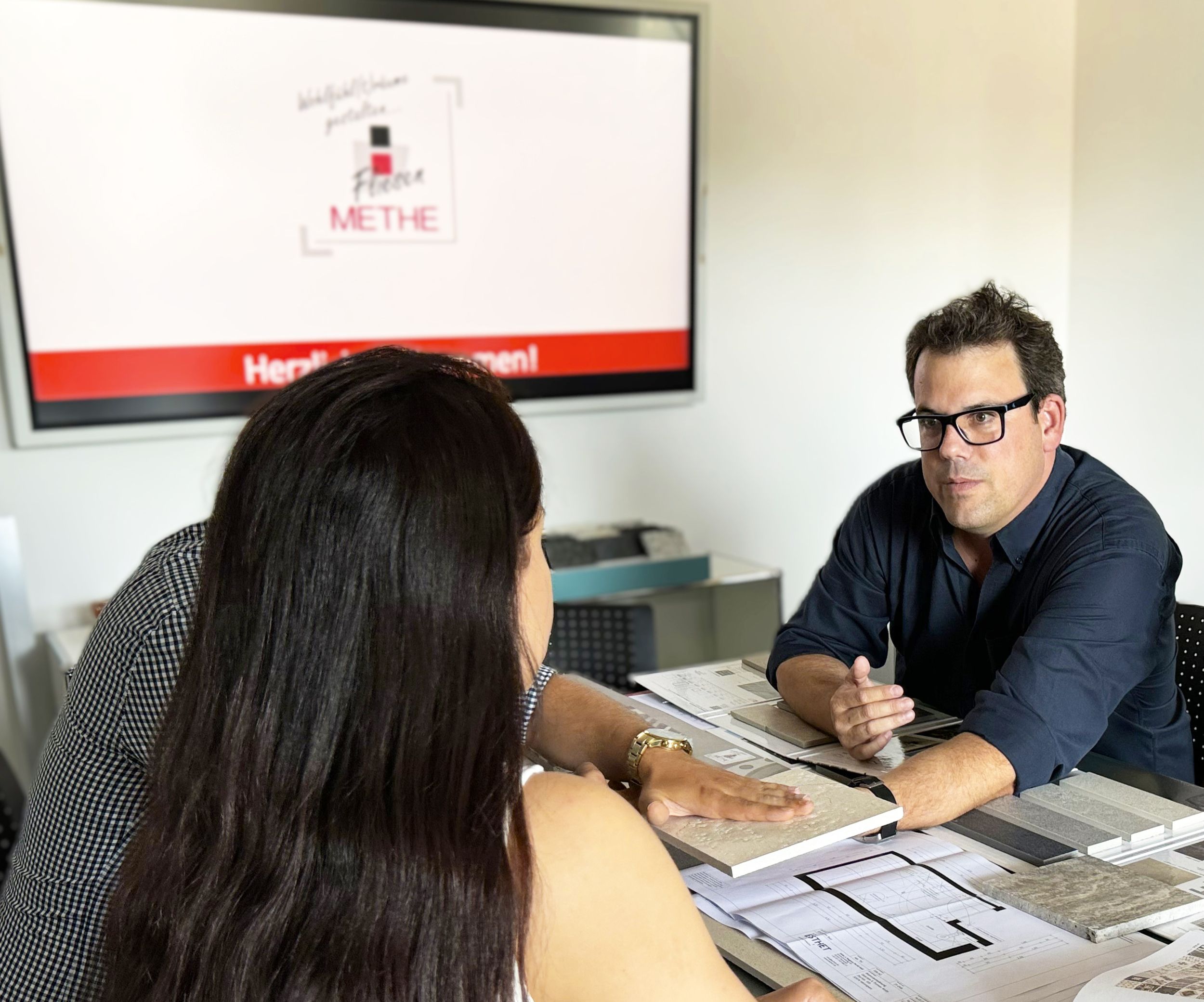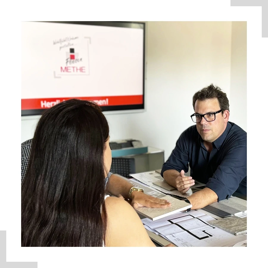 Bei METHE FLIESEN erhalten Sie eine individuelle Fliesenberatung direkt bei uns im Haus oder bei Ihnen vor Ort. Wir zeigen Ihnen, welche Fliesen optimal zu Ihrem Raum, Stil und Budget passen.